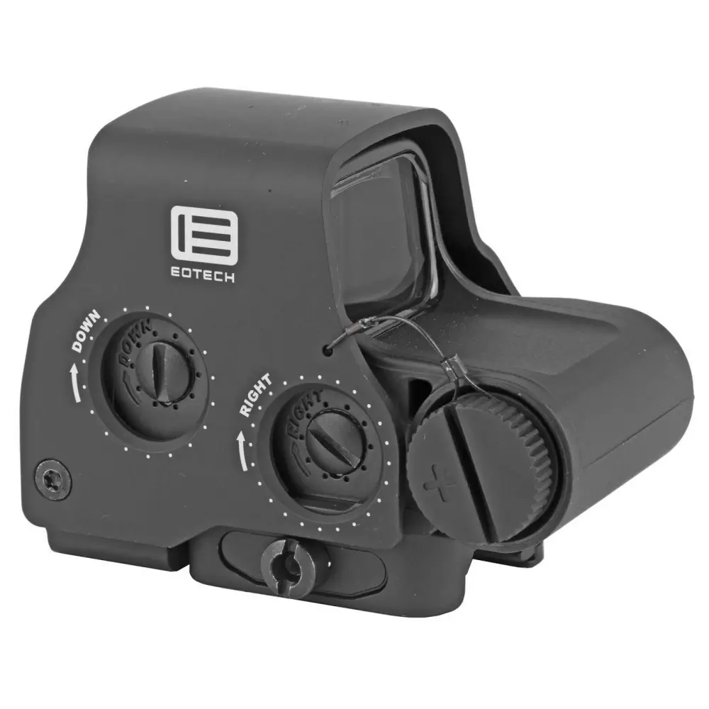 The EXPS2 offers true 2-eyes-open shooting and provides an unparalleled targeting experience. The increased height of the EXPS provides iron sight co-witness access in the lower third of the viewing window. It features easily adjustable side buttons and a quick-detach lever (fits both 1" Weaver and MIL-STD-1913 rail). It has a transversely-mounted lithium 123 battery which operates for 600 continuous hours at nominal setting 12 at room temp. The EXPS reticle has a 68 MOA circle with two (2) 1 MOA dots.