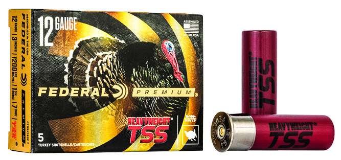 Kill gobblers at longer distances than ever before with HEAVYWEIGHT TSS. Its payloads of HEAVYWEIGHT Tungsten Super Shot provide the highest pellet counts possible. The tungsten-alloy materials 18 gm/cc density is 22 percent higher than standard tungsten and 56 percent more than lead. The result is the most energy and highest velocities at extreme range. Its rear-braking FLITECONTROL FLEX wad performs flawlessly through ported and standard turkey chokes for the most consistent, deadly patterns possible.