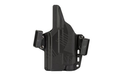 The Perun is their flagship outside-the-waistband (OWB) holster. It is the result of blending the best features of two of their most popular holsters, the Eidolon and the Phantom, to create a highly refined, exceptionally concealable holster. The Glock Perun LC is compatible with generation 3-5 Glock 9mm/.40S&W/.357 Compact Glock pistols with a Streamlight TLR-7 weapon light attached. Each holster includes three pair of 1.5" belt loops (LH 10 degree cant, RH 10 degree cant, and ambi 0 degree cant), which allow the end-user to configure the ambidextrous holster body for left-handed or right-handed use, with either a 0-degree or 10-degree cant.