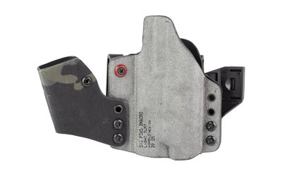 An ergonomic, mission-adjustable, RDS-compatible, multi-positional, deep concealment IWB hybrid thermoplastic holster. Its distinctive features enable concealed carry for a wide range of handgun fits from various carry positions while allowing a full firing grip prior to drawing. The design includes passive retention and adjustable tension, enabling a finely tuned fit and smooth draw. This evolution of the IncogX features a series of clips that provide more adaptability to the user while maintaining the original goals of improved grip, concealment, and function. The clips open outward and slide down with the holster, naturally locking over the belt. An actuated finger tab flexes to open, allowing quick installation or removal from the belt. An improved clip strut design combines functionality with customized concealment shims that can be easily installed or removed without tools. All IncogX models come with clip strut shims in three different concealment sizes: 1/8", 1/4", and 3/8".